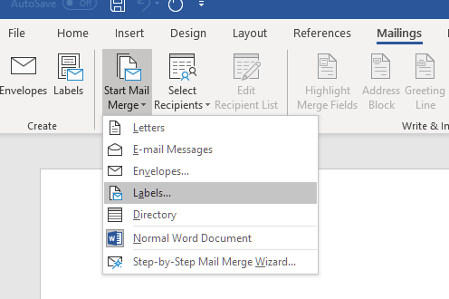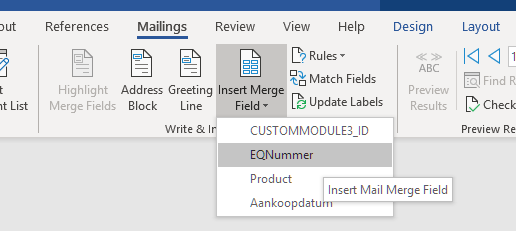 Stel de gewenst label op. Gegevens vanuit het Excel-bestand kunnen toegevoegd worden met "Insert Merge Field"